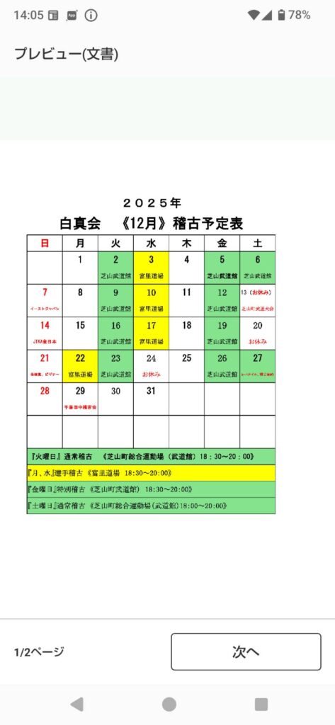 12月稽古予定表