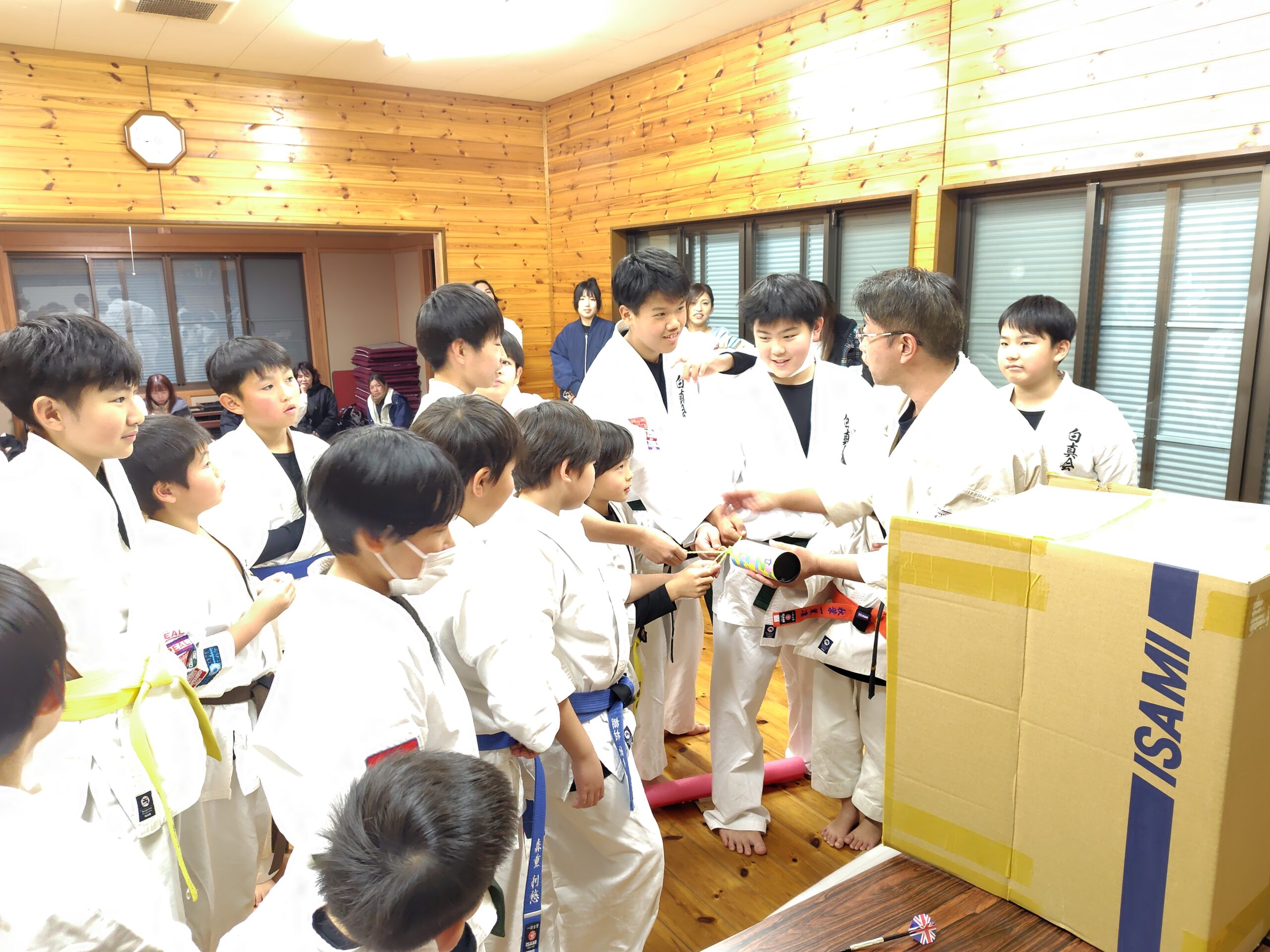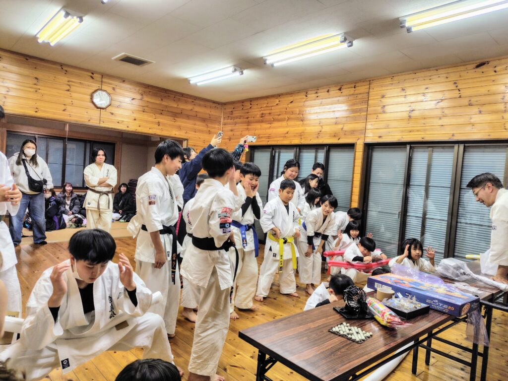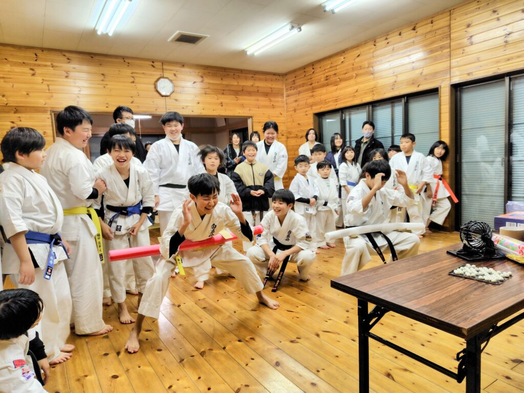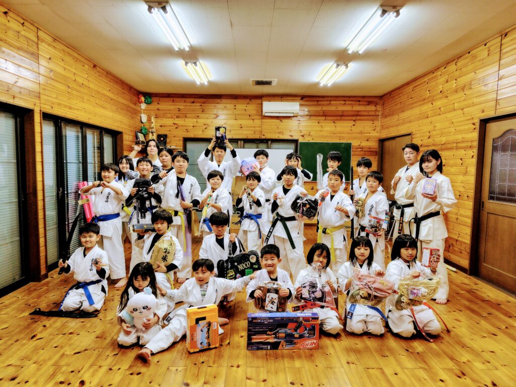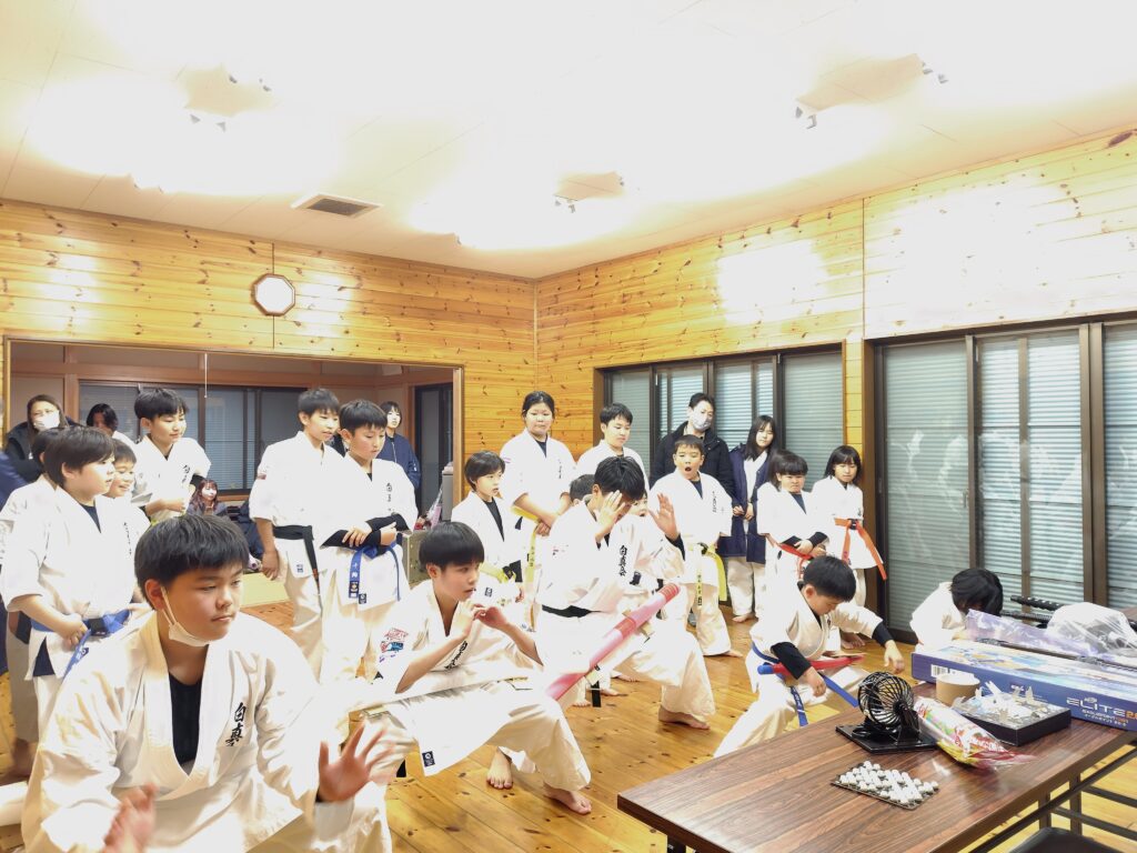 今年は1年経つのが本当に早く、あっという間の1年でした。大会も多数出場させて頂き、白真会イベントの夏季合宿、夏祭り、はにわ祭り演武等、色々とありました。稽古納めでは、恒例のビンゴ大会に今年は騎馬立ちサドンデスを行い賞品かけて道場生達の根性比べも面白かったです。保護者の皆さんからもぬいぐるみや、お米等賞品のご寄付を頂き本当にありがとうございました。今年は道場生の成長が良く見えたと思います。そして、上級の先輩達にはたくさん助けてもらった1年でもあり本当に有り難い存在です。毎回、笑顔で稽古に来てくれる道場生皆にも感謝です。来年も道場生皆にとって飛躍の1年となるよう誠心誠意、努めて参りたいと思います。各道場の先生方、そして関係者の皆様、今年も1年、誠にありがとうございました。