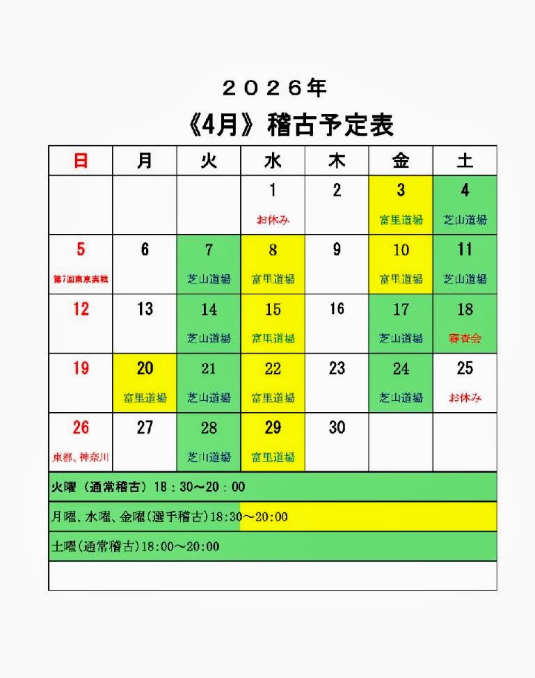 2026 4月稽古予定表